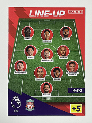 Liverpool Lineup Card. Card Number 207 from the Panini Adrenalyn XL 2021/22 season. Liverpool Card.