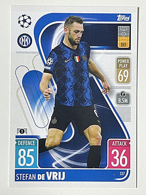 Stefan de Vrij Base card. Card number 337, part of the Base set of the Match Attax 2021/22 UEFA Champions League collection. FC Internazionale Milano card.