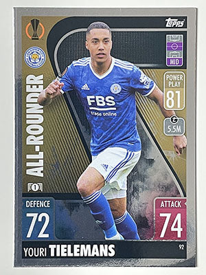 092 Youri Tielemans All Rounder (Leicester City) Match Attax 2021/22
