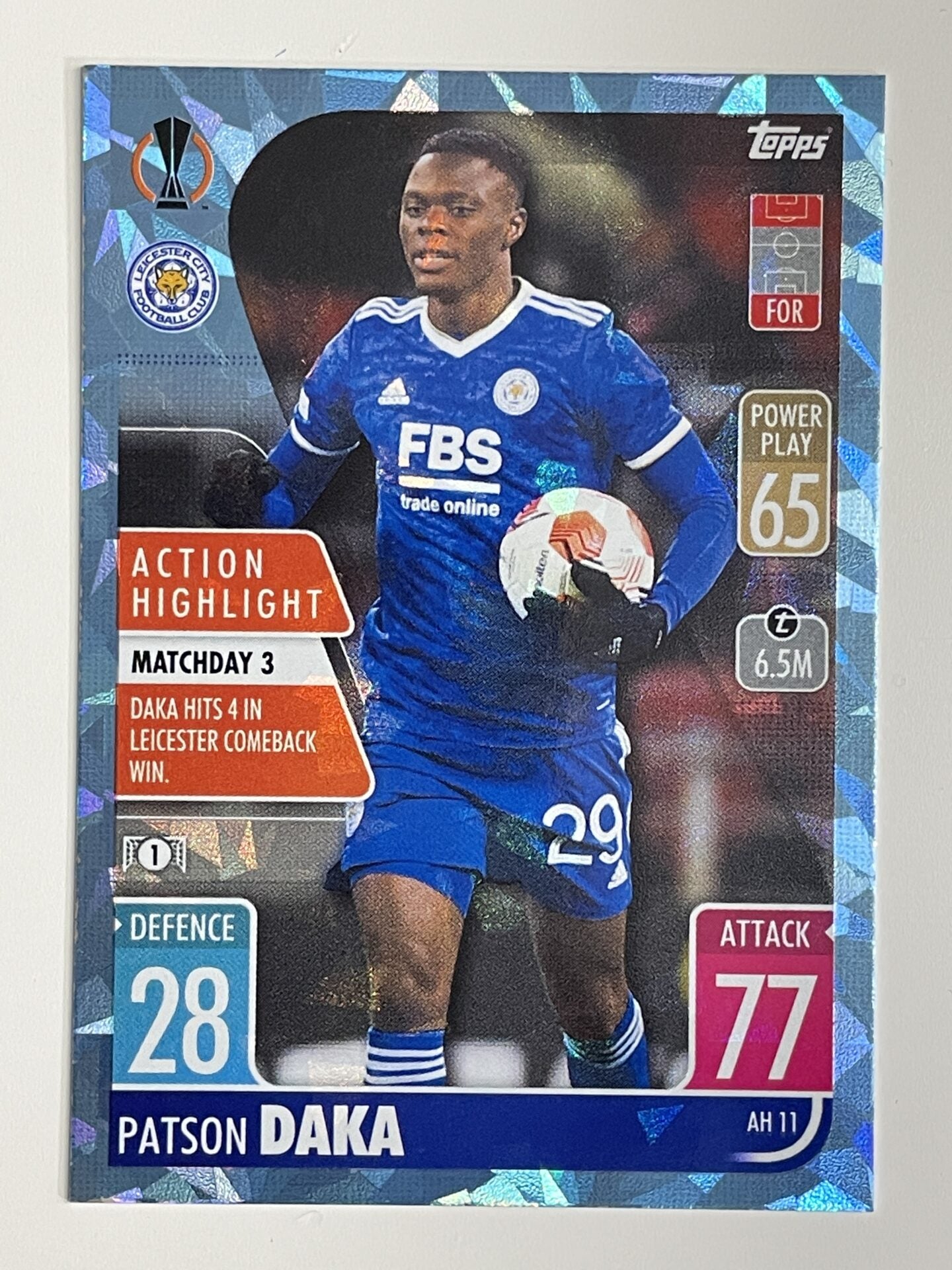 AH11 Patson Daka Leicester City Action Highlight Crystal Foil Parallel Topps Match Attax Extra 2021/22 Card