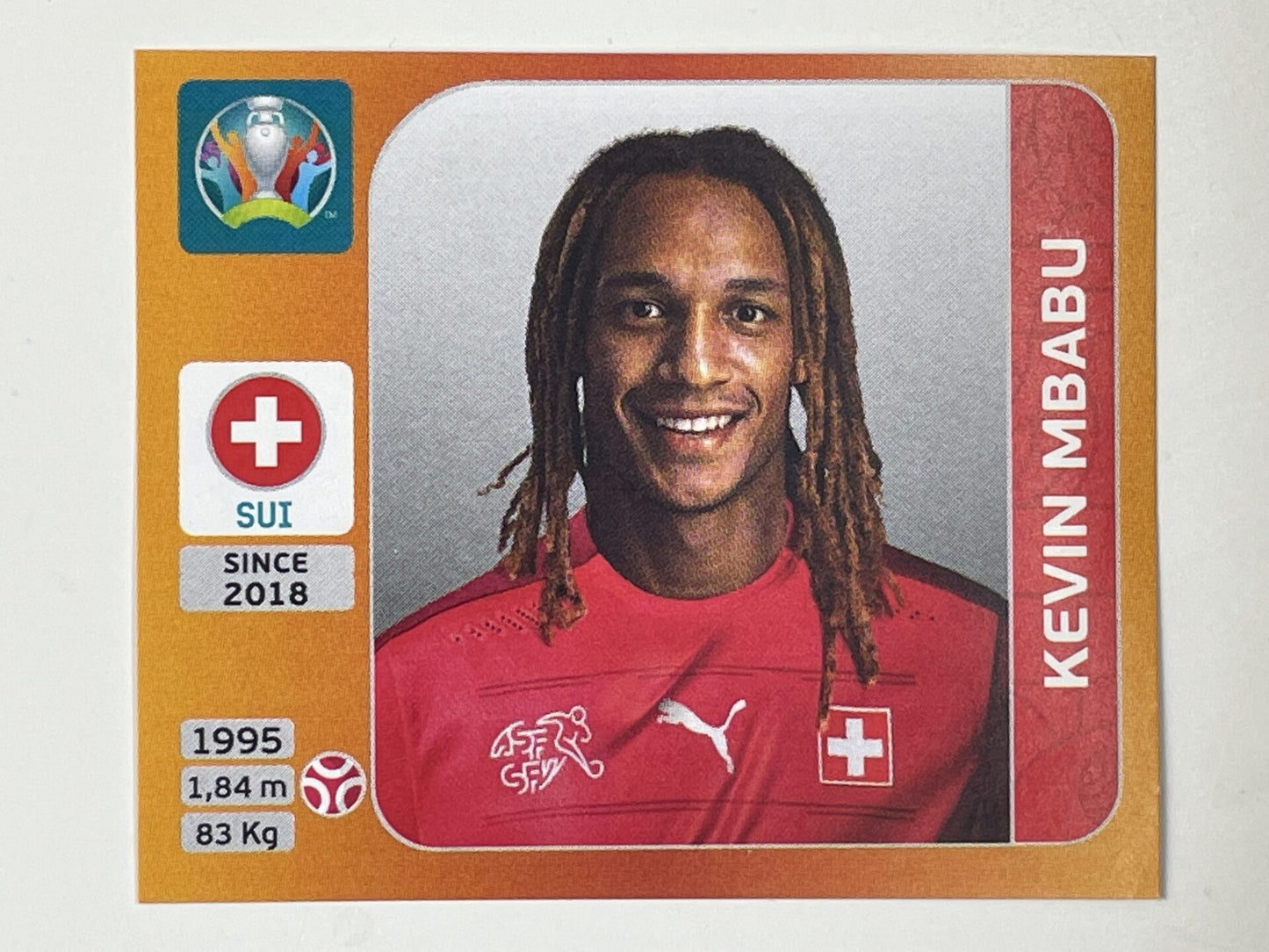 Kevin Mbabu sticker from the Euro 2020 Tournament Sticker Collection. Switzerland sticker, number 49.