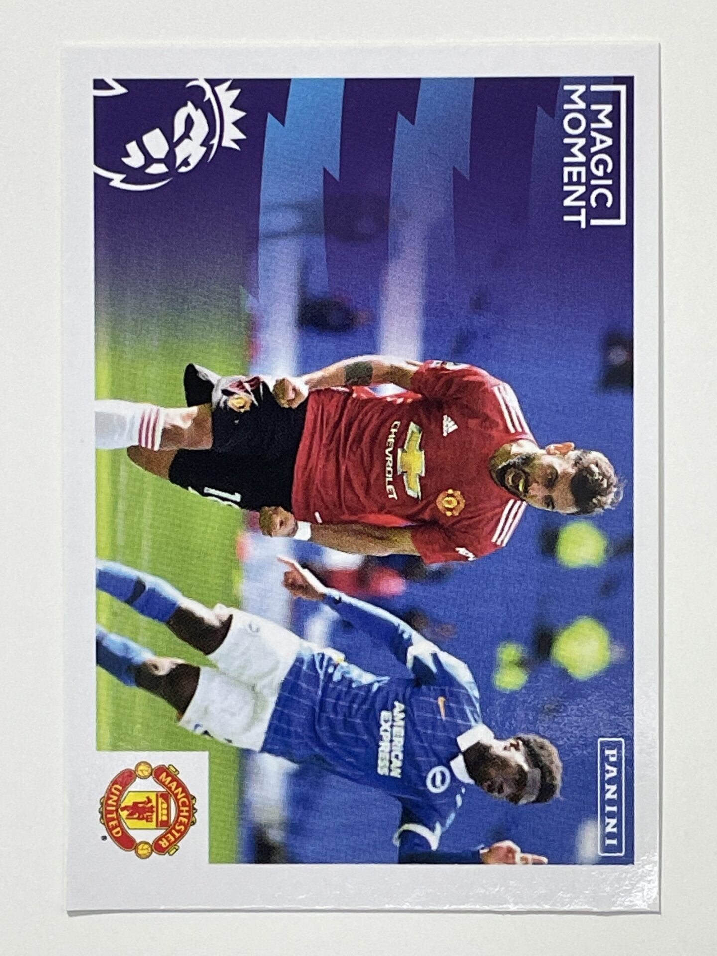 437. Magic Moments Premier League 2021 Sticker (Manchester United). The Panini Premier League Official Sticker Collection 2021 is here! Back for a second year, it is the ONLY official Premier League sticker collection and features the top footballing talent from one of the most competitive and inspiring football leagues in the world. The collection of 642 stickers features all of the league's top names and rising stars, with plenty of shinies and special stickers to keep an eye out for. This year’s collection features more facts, more stats and more analysis. It includes all 20 Premier League teams and features their kits, their manager’s Premier League record and stats about each player on their individual sticker. There are also four pages dedicated to the Premier League’s most elite players, with even more detailed info.